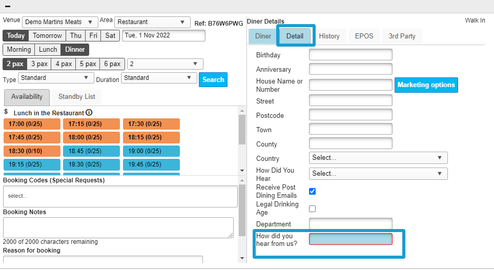 NOTE: 'How Did You Hear 'is only used for internal bookings and you can not enable them for online. If you wanted this option online then you would require to create a custom field see guide on this feature here