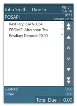 Deposit Management: Deposits made via ResDiary are included in the POS check for redemption.
