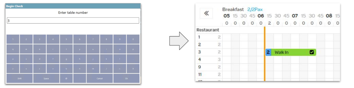- If a guest arrives without a reservation, adding a walk-in to ResDiary will open a new check in Simphony.