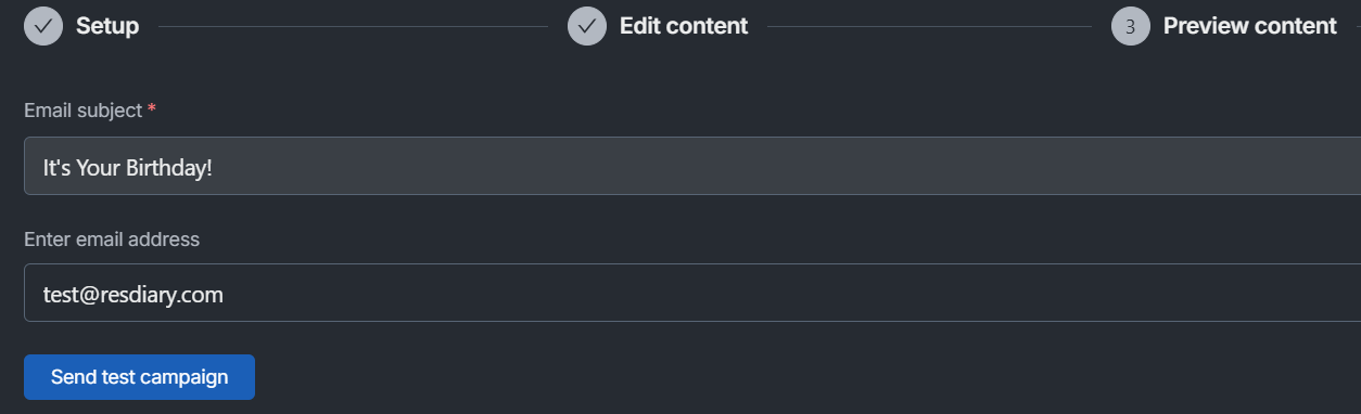 - When you click Next, it will generate an option to add a test email to send to to double check the campaign before sending out the blast to all customer.