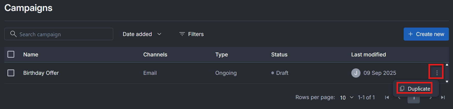 Yes! A previous campaign can be duplicated by clicking on the three-dot icon on the right of the campaign you would like to duplicate and then selecting Duplicate.