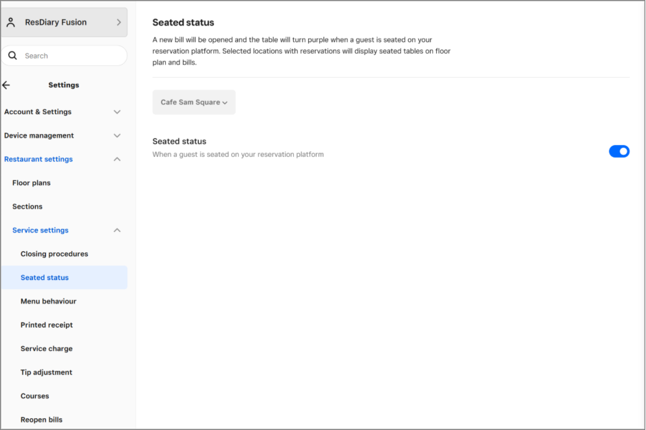 In Square, go to: Settings > Restaurant Settings > Service Settings > Seated Status