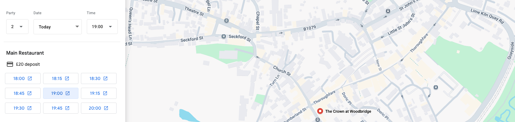 Until now, ResDiary venues could list availability on Google — but only if that availability didn’t require payment. Now, with this update, deposit-enabled time slots will appear in the Google feed, and diners will be redirected to complete payment before confirming.